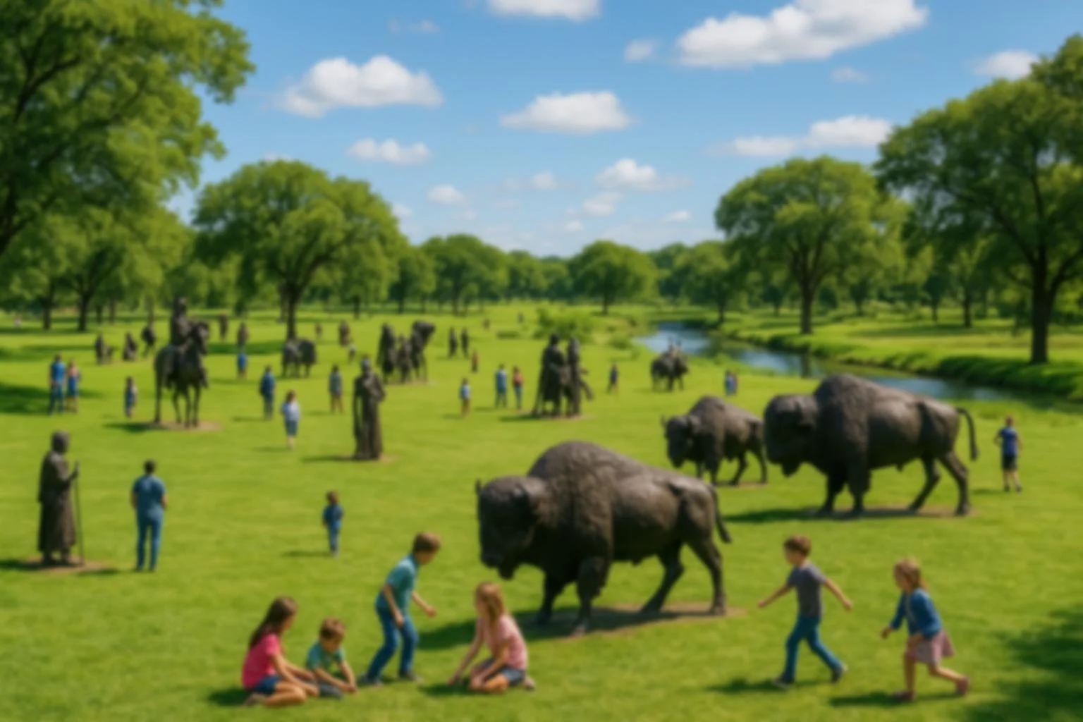 Your support funds the creation of large bronze sculptures, thoughtful landscape design and placement, educational materials and interpretive signage, ongoing park maintenance, and future expansions with new narrative vignettes.